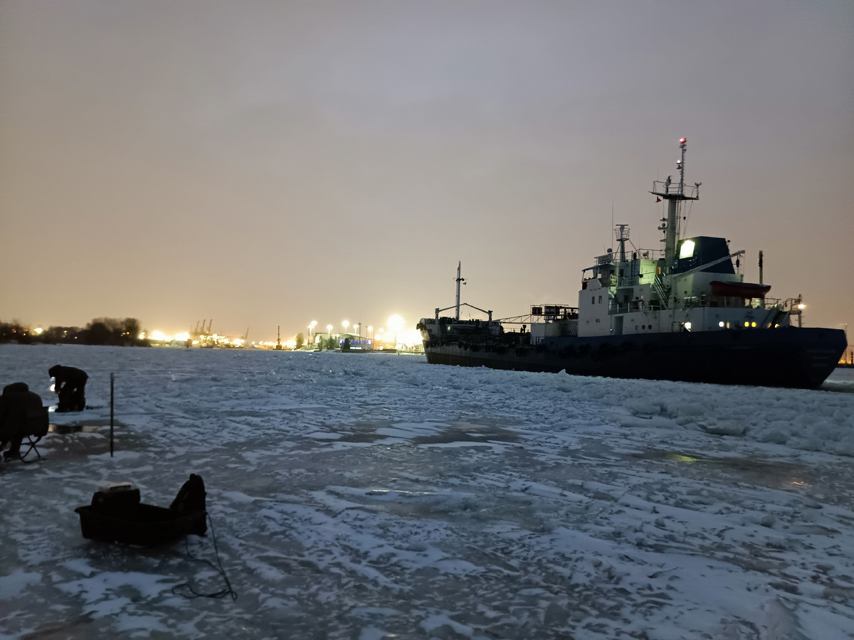 В среду 15 декабря, когда на улице трещал мороз под 20 градусов, Олег присылает видео в наш судачий чат, от которого сердце стало биться чаще... Он на льду Финского залива за Канонерским островом на фарватере, лежит несколько добрых судаков, лед неплохой, а это значит есть надежда на рыбалку в выходные дни! Но это только среда! В четверг утром еще мороз, а к вечеру уже плюс два, а в пятницу весь день плюс 5 и дождь. Будем надеяться, что лёд не уплывет и не смоется дождем. Четверг и пятницу ребята ездили на судака и на Канары и на Балтийскую яму, везде ловили рыбу в количестве. По 20-40 штук от 400гр до двух кг попадались клыкастые, но товарной рыбы не так много, увозили домой парни по 2-3, реже 4-5 колючих разрешенного размера. Субботнее утро, на улице легкий мороз минус три, мы встречаемся на парковке Канонерского острова большой бандой и стартуем в 8 с копейками. Идем на точку, где ребята вчера под вечер нашли хорошее скопление хищных рыб. Выход на фарватер с трещинами, но крепкий.