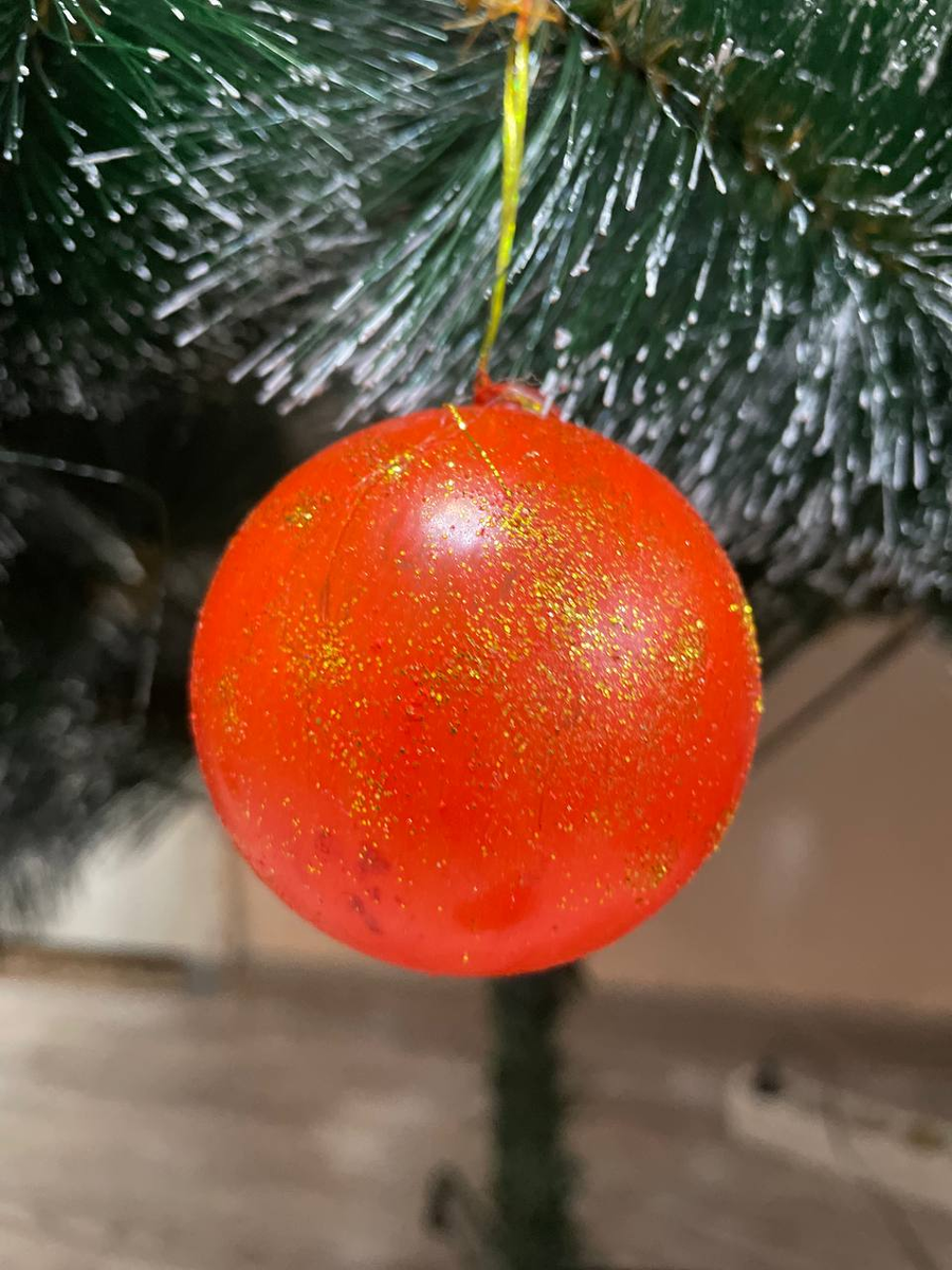 И вот что я вам скажу - никогда не выбрасывайте сломанные гирлянды из Сима-ленда! У нас как раз такая пришла - шарики есть, света нет. Ну мы с дочкой не растерялись - сходили в ближайший канцелярский магазин, купили красный акрил, покрасили шарики, потом обмакнули в блёстки... Теперь эти самоделки - звёзды нашей ёлки! Младшая их теперь называет "наши самоделишки" и пытается снять с елки именно их вместе с кексами.