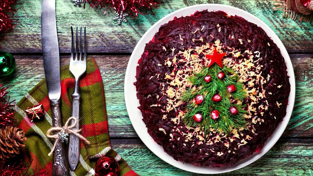Очень быстро можно приготовить салаты из свеклы, моркови, капусты, яблок. Несмотря на то что их нельзя назвать изысканными, многие любят такие закуски. Овощные салаты станут еще полезнее, если заправлять их натуральным йогуртом, майонезом домашнего приготовления или соусами. Праздничная посуда, оригинальная выкладка, украшения зеленью и съедобными ингредиентами в зимнем стиле добавят блюдам новогоднего настроения.