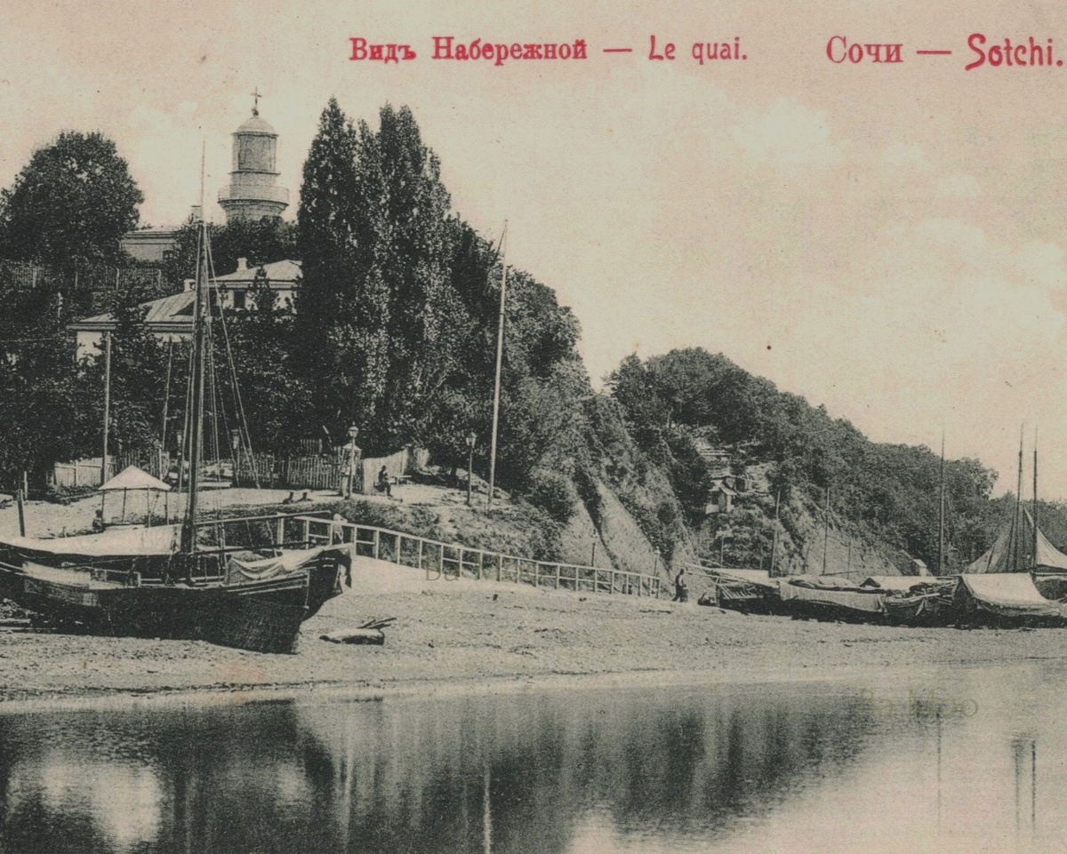 «Сочинский маяк стоит против церкви на возвышенном берегу, близ обрыва. Башня его белокаменная, связанная с жилым одноэтажным домом. Осветительный аппарат 1-го разряда. Огонь белый, постоянный, освещает весь морской горизонт. К маяку ведет от берега шоссированная дорога, высадка на берег возможна лишь при отсутствии сильного ветра с моря, в тихую же погоду приставать на шлюпке к песчаному берегу под маяком удобно». В настоящее время оптическое оборудование маяка,