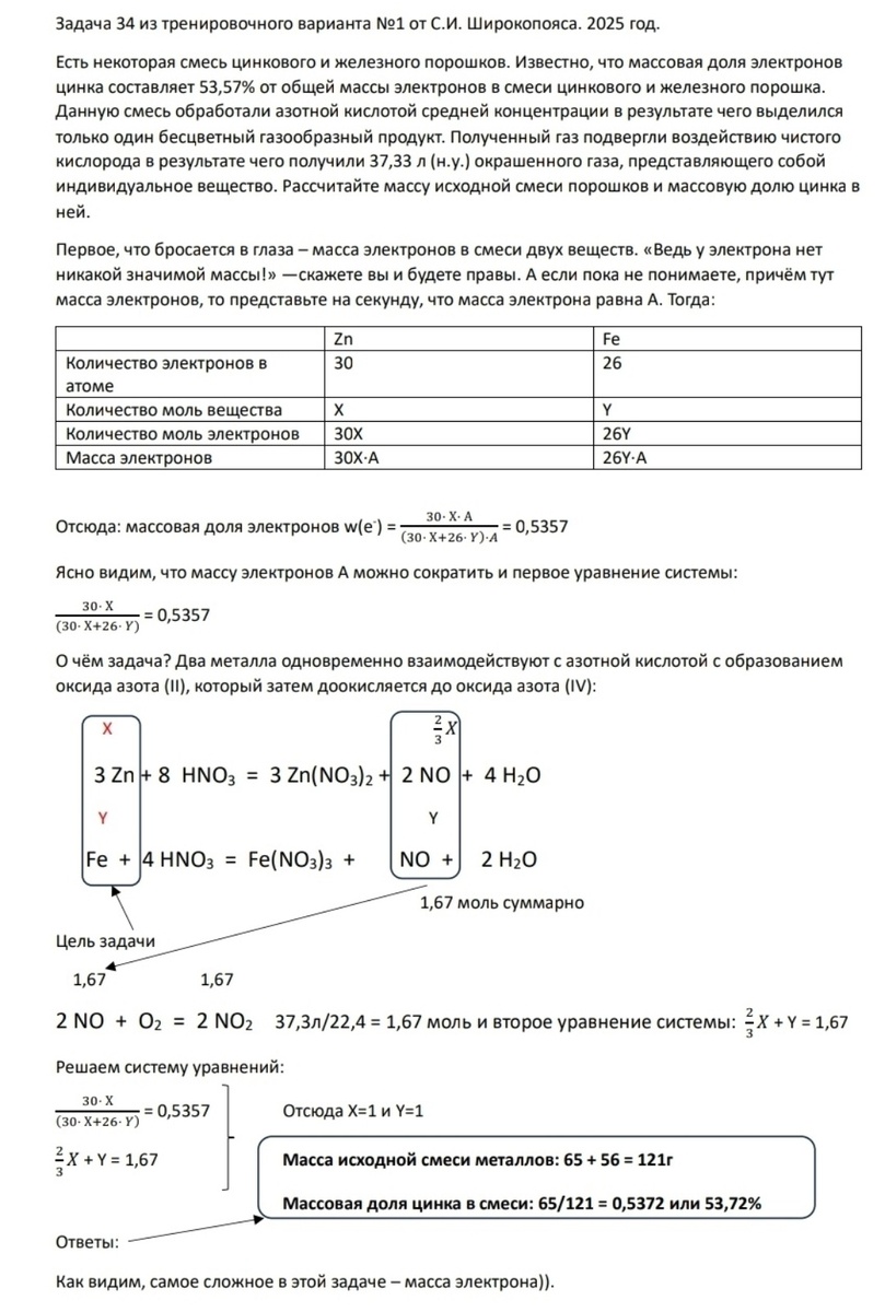 Существует четыре способа справиться с 34-й задачей. Способ №1 - забить на неё. Способ №2 - написать уравнения реакций и заработать лишний балл. Способ №3 - самостоятельно проработать много доступных задач, сверяясь с решениями и ответами. Вполне себе рабочий путь, если ты привык доходить до всего исключительно своим умом. Способ №4 - с помощью опытного преподавателя понять логику этих сложных задач и научиться справляться с ними уверенно.
