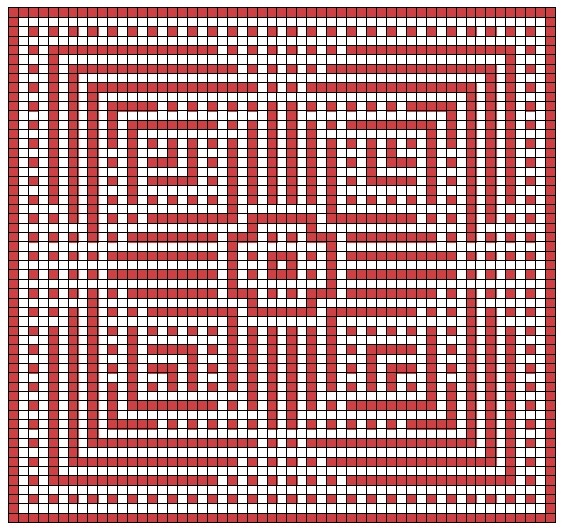 Уже не раз упоминала, что мне нравятся узоры, где есть «полосатые» участки, особенно если они находятся в углах схемы. Время от времени делаю такие схемы, и начинаю их составлять как раз с углового узора. В этот раз, узор сделала не только из горизонтальных полос в углах, но и из вертикальных полос в центре схемы. Схема мотива, для вязания в мозаичной технике крючком, размером 27 рядов, а с крестиками схема находится в галерее.