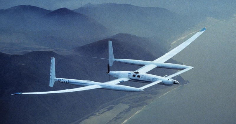 23 декабря 1986 года совершил посадку самолет, который впервые облетел вокруг земного шара без посадки и дозаправки! До этого такое путешествие никто не совершал, да и воздушного судна такого не было! Нужен был очень экономичный самолет, что бы можно было несколько дней находиться в полете. Такой построили специально для установления рекорда. Это сделал известный аэрокосмический инженер Бёрт Рутан, которого считают авиационным новатором за его оригинальные решения. Он учредил собственную компанию в 1982 году и успешно создавал уникальные модели для разных лётных задач. Наверно его можно сравнить с Илоном Маском... Model 76 Voyager был построен в единственном экземпляре для рекорда дальности полета без дозаправки. Управлял самолетом экипаж из двух человек: летчицей Джин Йегер и братом изобретателя Диком Рутан. Они поднялись в воздух с авиабазы в Мохаве 14 декабря и приземлились там же 23-го. Самолет пролетел 40 тысяч километров за 9 дней и это было круто! Он был снабжен двумя поршневыми