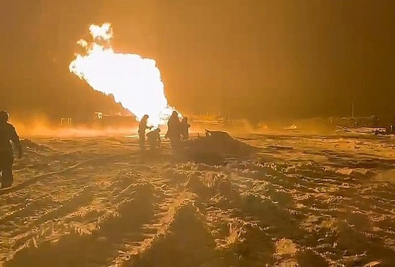 МЧС России представило кадры с места возгорания буровой установки вблизи поселка Красногорский в Оренбургской области. По информации ведомства, происходит «факельное горение газового фонтана». Пострадавших, по предварительным данным, нет. Причины возгорания не уточняются.