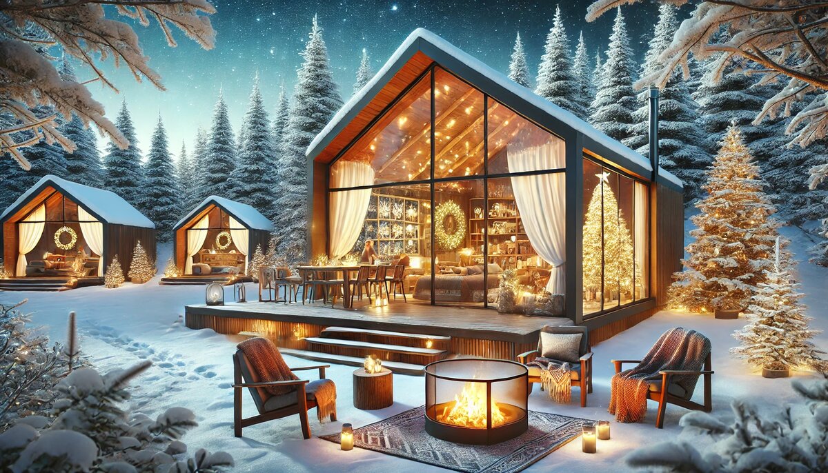 Новый год – это время волшебства, исполнения желаний и новых впечатлений. Многие из нас привыкли встречать этот праздник дома, в кругу семьи или шумной компании друзей. Но что, если в этом году попробовать что-то новое? Как насчёт того, чтобы отметить Новый год на природе, в современном и уютном глэмпинге RUZA RIVER CLUB? Рассказываем, как сделать этот праздник по-настоящему незабываемым. Для начала разберёмся, что же такое глэмпинг. Это сочетание слов "гламур" и "кемпинг", которое означает отдых на природе с уровнем комфорта, не уступающим отелям. Вы живёте в уютных современных домиках, наслаждаетесь природой, но при этом у вас всегда есть горячая вода, мягкие кровати и даже панорамные окна с видом на заснеженные леса. Глэмпинг RUZA RIVER CLUB идеально подходит для зимнего отдыха: всего в 100 метрах расположено Рузское водохранилище, а сами домики созданы для уединения и комфорта. RUZA RIVER CLUB предлагает семейные домики с панорамными окнами и всеми удобствами. Забронируйте заранее,