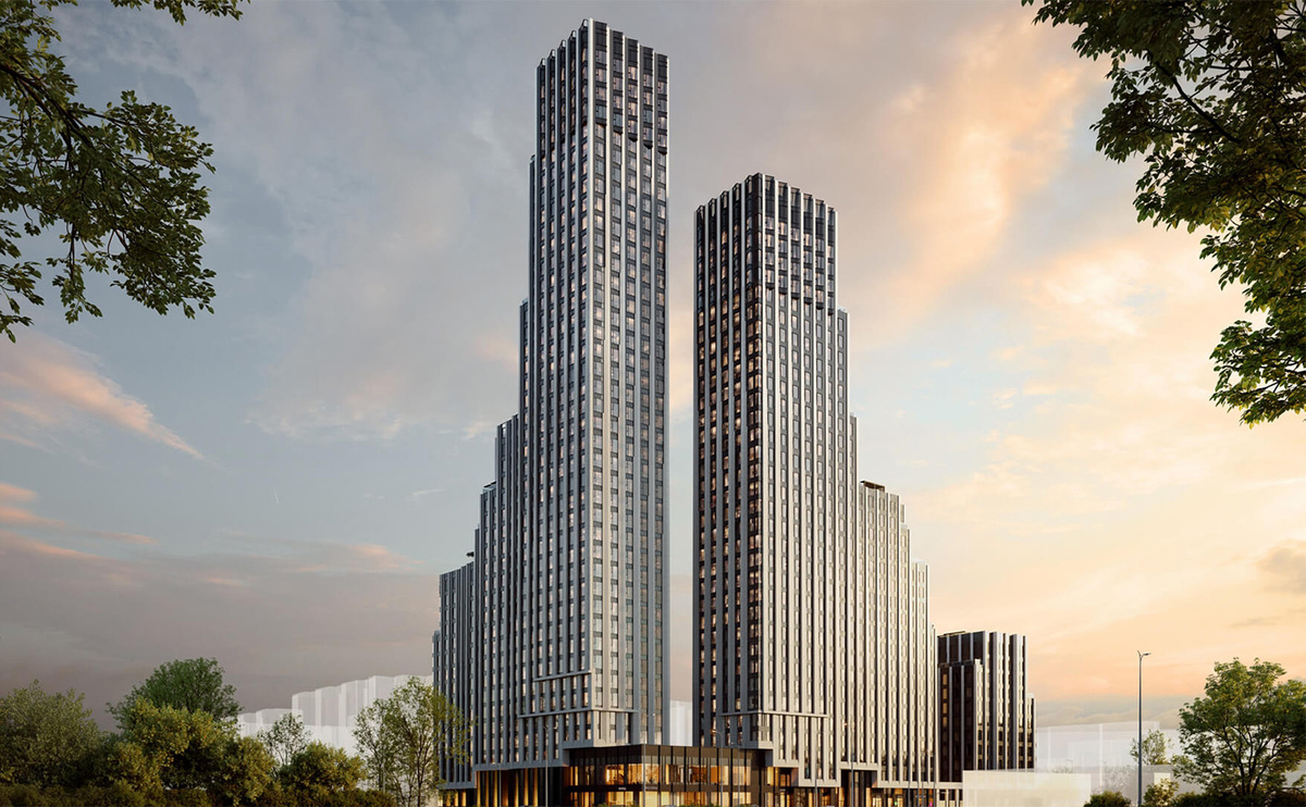 Жилой комплекс включает в себя 3 корпуса переменной этажности: 1 корпус от 14 до 41 этажей, 2 корпус от 18 до 33 этажей, 3 корпус от 10 до 14 этажей. Дома возведены по кирпично-монолитной технологии строительства с комбинированными фасадами. В создании проекта принимает участие архитектурное бюро «Остоженка». Выполнена дизайнерская отделка входных групп и установлены современные скоростные лифты. На первых этажах расположены колясочные, кладовые и лапомойки для домашних животных.