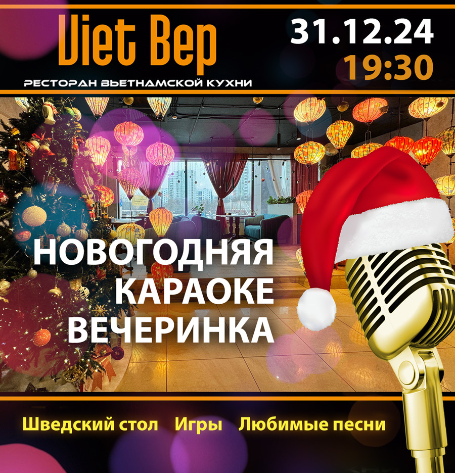 Дорогие друзья, вьетнамский ресторан «Viet Bep» рад пригласить 31 декабря в 19-30 на встречу Нового года! Гостей ожидает роскошный шведский стол с колоритными азиатскими блюдами и развлекательная шоу-программа. 19:30 - 20:00: Сбор гостей, фотосессия у праздничной фотозоны, приветствие от персонала. 20:00 - 21:00: Приветственный тост с шампанским и приглашение к шведскому столу. 21:00 - 21:15: Игра «Задуй и поздравь!» Гости задувают свечи и кричат: «С Новым годом!» или «Chúc mừng năm mới!» (по-вьетнамски). 21:15 - 21:30: Караоке-сессия, где гости могут продемонстрировать свои вокальные таланты. 21:30 - 21:45: Игра «Снежный вызов» - игроки по очереди вытаскивают бумажные салфетки из коробки, стараясь не порвать их. Кто порвет — выбывает. 21:45 - 22:00: Продолжение караоке-сессии. 22:00 - 22:15: Игра «Елочные тряски». Участники трясут коробку с салфетками, чтобы мячик внутри двигался, не позволяя ему выпасть. 22:15 - 22:30: Продолжение караоке-сессии. 22:30 - 22:45: Игра «Зимние стулья».