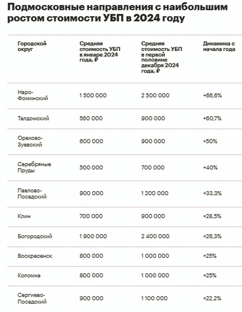 Подмосковные округа с максимальным ростом цен на земельные участки в 2024 году