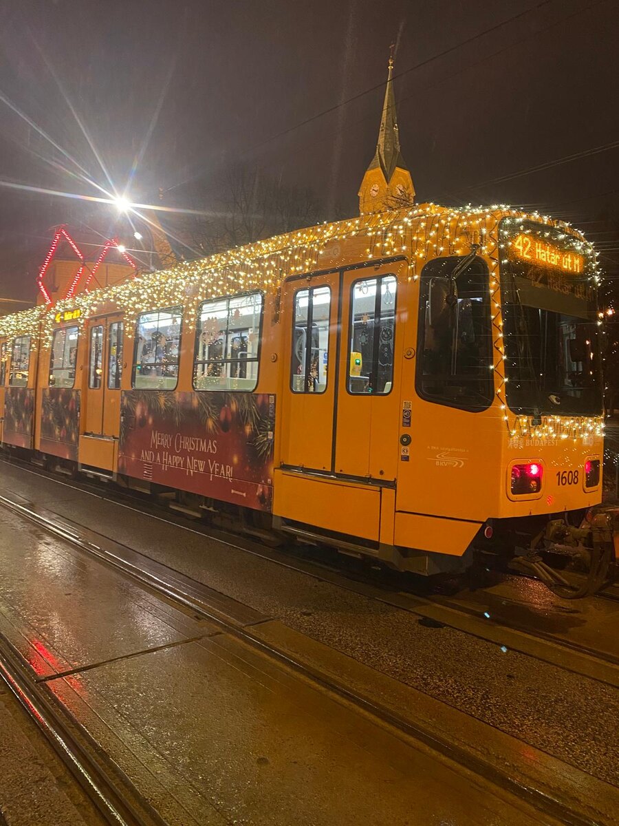 В католической Европе все готово к празднованию Рождества: в больших городах работают праздничные ярмарки, украшены елки и улицы, а жители и туристы мечтают попасть на рождественский транспорт. Меня зовут Анастасия. В 2020 переехала к мужу в Будапешт. Работаю онлайн-преподавателем английского языка с учениками из России и параллельно развиваю свой бренд свечей ручной работы в Европе. На своем канале рассказываю о своей РЕАЛЬНОЙ, а не нельзяграмной жизни в Венгрии. Подписывайтесь! В Будапеште есть рождественский троллейбус, трамвай и автобус. Ходят они вечером, когда на улице уже темно, так как транспорт украшен гирляндой. В своем тг-канале я недавно показывала, что мы случайно отправились в супермаркет именно на таком трамвае. Вот так трамвай выглядит внутри. На окнах красуются рисунки. Листайте карусель. Но самый долгожданный для всех трамваев - это тот, на котором не в супермаркет ездят, а который специально ждут по расписанию. Летом этот трамвай курсирует как трамвай-ностальгия, т.