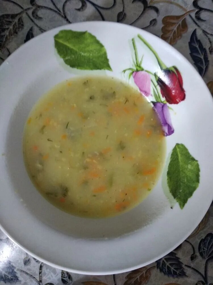 В классический гороховый суп кладут мясо и копчёности, но детский суп варится на основе овощей и овощного бульона. В дальнейшем, когда ребёнок уже ест супы на основе куриного бульона, можно варить на таком бульоне и гороховый суп.