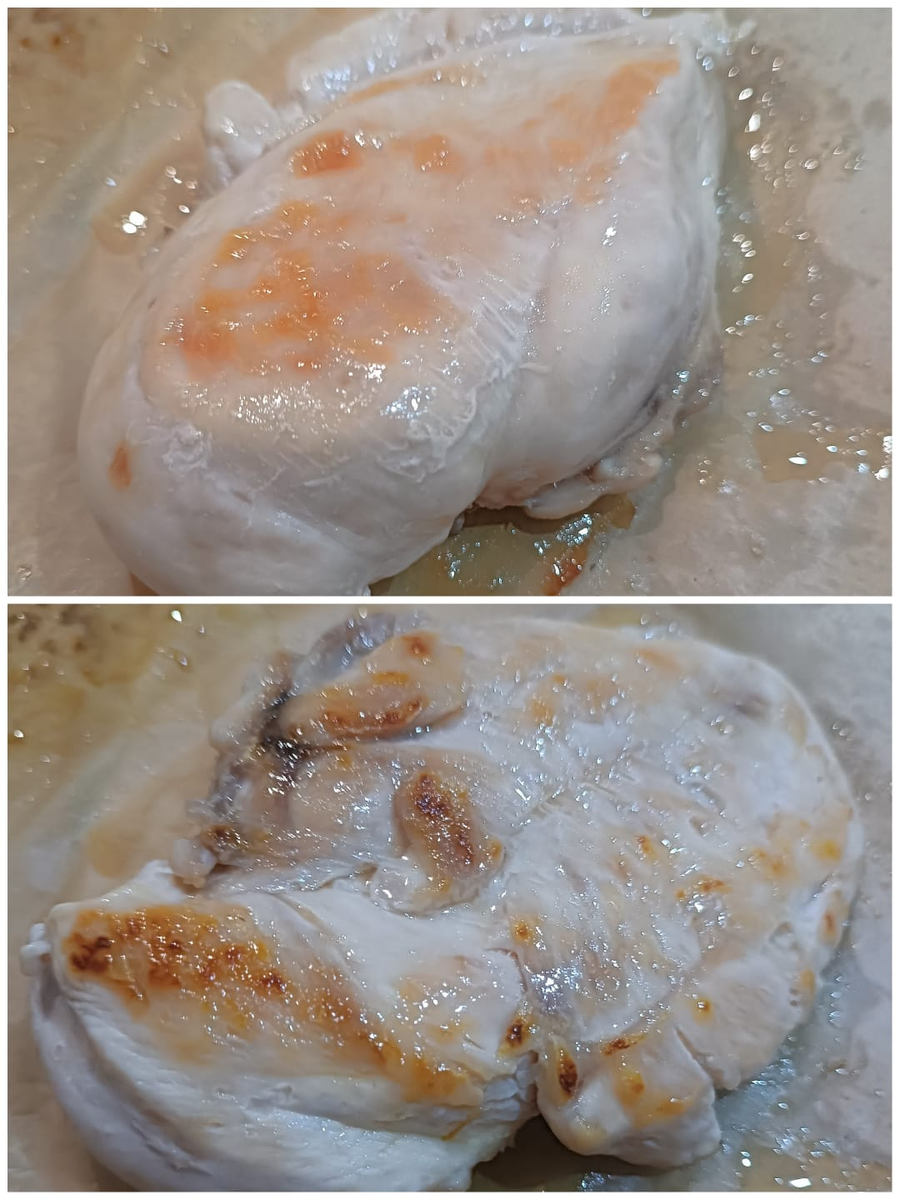Доброго понедельника! Закуски я вам показала. Соусы тоже. Перехожу к салатам ) Ссылки под синим текстом, просто нажимайте на него и некоторые будут в конце публикации. На первом месте среди праздничных салатов у меня "Цезарь". Варианты: с курицей, с креветками или с лососем. Куриную грудку для салатов можно приготовить очень быстро и просто, но вкусно, мягко и сочно, в пергаменте или в бумаге для выпечки , на сковороде за 6 минут. Вот такая она получится, с травами-приправами или без, на ваш вкус. Рецепт по ссылке, кликайте на синий текст А вот он "Цезарь" с подобной куриной грудкой, соусом и пшёнными сухариками, подробнее по ссылке. На новогодний стол я люблю "Цезарь" с креветками. Креветки разморозить, промыть, обсушить. На сковороду с оливковым маслом добавить пластинки чеснока, выложить креветки, посолить и поперчить белым перцем прямо на сковороде, обжарить с двух сторон , по 2 минуты. У креветок нежный вкус, особенно у мелких, забивать их вкус не стоит. Часто бывает "Вальдо