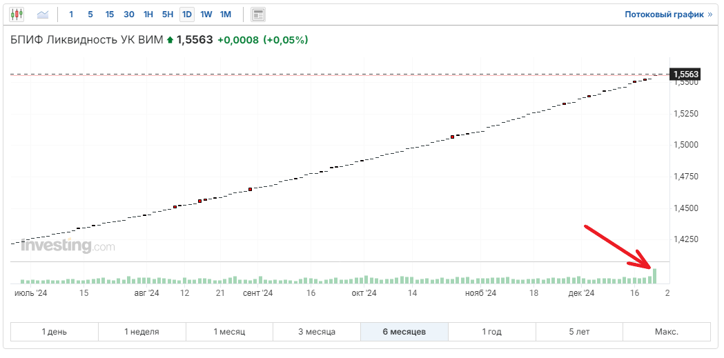Если помните, я писал что в фондах денежного рынка или фондах ликвидности, как их еще называют, к концу года соберется порядка 1 трлн рублей, и это своего рода финансовая кубышка, в которой инвесторы копят деньги и ждут своего часа, чтобы использовать их для покупки акций или облигаций. Так вот, в пятницу, 20 декабря, после того как ЦБ объявил неожиданное решение по ключевой ставке, сохранив ее на прежнем уровне, эта кубышка впервые была заметно распечатана. Например, объем торгов по крупнейшему фонду денежного рынка от ВТБ - LQDT, которым пользуюсь я, составил порядка 25 млрд рублей, что стало самым крупным дневным объемом за все время его существования, и в 3-4 раза превысило типичные объемы торгов. С учетом других фондов ликвидности на Мосбирже, где наблюдаются аналогичные скачки по объемам, могу предположить, что всего из кубышек 20 декабря было изъято где-то около 40 млрд рублей, вряд ли больше. Инвесторы достали деньги из кубышки, для того, чтобы купить акции и облигации. И купил