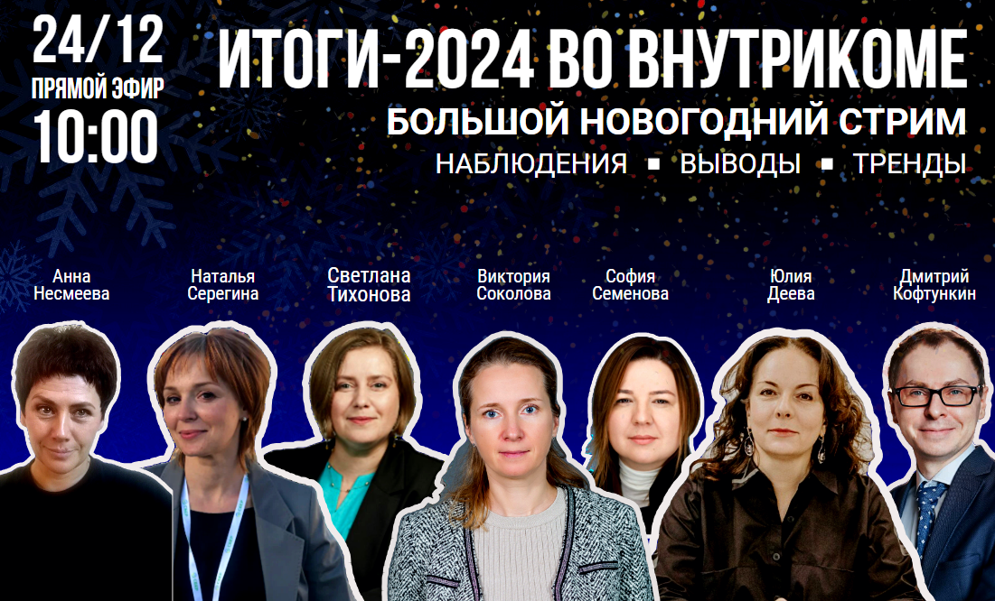 ✨ Встречаемся завтра в эфире Открытого Лектория. Подведём итоги уходящего года и обсудим планы на будущее. ⏰ 24/12 в 10:00 На связи эксперты Сообщества внутренних коммуникаторов: ▪ София Семенова, руководитель направления развития бренда работодателя ведущего агрохолдинга ▪ Виктория Соколова, заместитель директора по коммуникациям Минерально-химической компании «ЕвроХим» ▪ Юлия Деева, эксперт с более чем 20-летним опытом в сфере корпоративных коммуникаций, руководитель направления по связям с общественностью УК «Полюс» ▪ Наталья Серегина, руководитель отдела внутренних коммуникаций «Сбербанка» ▪ Светлана Тихонова, руководитель группы внутренних коммуникаций «СКБ Контур» ▪ Дмитрий Кофтункин, эксперт по корпоративным коммуникациям, бренду работодателя, программам благополучия и геймификации. Ведущая эфира — Анна Несмеева, основатель Сообщества внутренних коммуникаторов. РЕГИСТРАЦИЯ