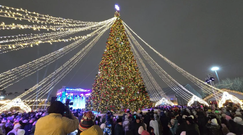 Астана в преддверии праздника становится настоящей зимней сказкой. Улицы столицы украшены сверкающими гирляндами, яркими световыми инсталляциями и роскошными елками. Самые высокие в этом году — 25-метровые ели. Они украсили площадь монумента «Қазақ Елі» и парковку стадиона «Астана Арена». Эти две локации стали центральным элементом праздничного декора. В городе прошла торжественная церемония зажжения более 30 елок, которая собрала свыше 15 тысяч жителей и гостей города. Главная елка у стадиона «Астана Арена» поражает своим великолепием: декоративные снежинки, 2500 игрушек в красно-желтой гамме и огромная светящаяся снежинка на вершине делают ее уникальной. Во время зажжения елки была организована концертная программа с участием Қайрата Баекенова, Рината Малцагова, AYREE, детского хора и танцевальных коллективов. По словам акима города Жениса Касымбека, с церемонии зажжения елок начинаются все остальные празднования Нового года. Для детей районными акиматами и профильными управлениями б