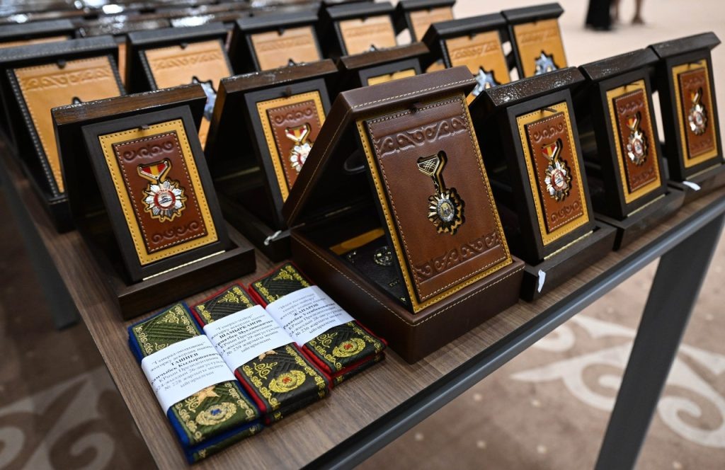 🎉 Президент Садыр Жапаров “Ынтымак Ордодо” салтанаттуу аземде Мекенге сиңирген эмгеги үчүн өлкөнүн чыгаан атуулдарына мамлекеттик сыйлыктарды тапшырды.