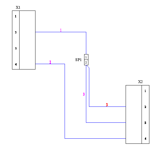 При размещении графического образа разветвителя (сращивания) происходит автоматическая ориентация по направлению проводника, в который вставляется разветвитель. Размещенному на схеме разветвителю можно назначить каталожные данные, описания и другие данные. Номера проводов до и после разветвителя разные. Для размещения разветвителей используется инструмент Вставить разветвитель на панели «Вставить компоненты» вкладки «Схема».