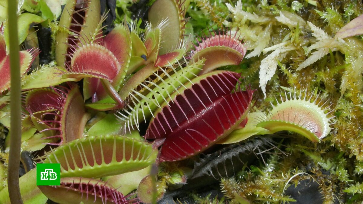 [ Смотреть видео на сайте НТВ ] В «Аптекарском огороде» представлена одна из самых масштабных в России экспозиций плотоядных растений. В «Аптекарском огороде» отмечают необычный праздник — день рождения хищного болота. Ему исполняется 10 лет. Уникальная экспозиция появилась в Москве в декабре 2014 года. Это настоящее тропическое болото с уникальным микроклиматом и хищными растениями со всего мира. В их числе — знаменитая Венерина мухоловка, а также другие плотоядные растения, которые способны ловить и переваривать насекомых, земноводных и даже мелких грызунов. Виталий Алёнкин, куратор коллекции тропических растений: «Насекомое залезает, ползет, начинает барахтаться, задевает волоски — и тут же закрывается ловушка. Из этой ловушки уже практически не выбраться». Экспозиция плотоядных растений в «Аптекарском огороде» — одна из самых масштабных в России. Она регулярно пополняется. [ Смотреть видео на сайте НТВ ]