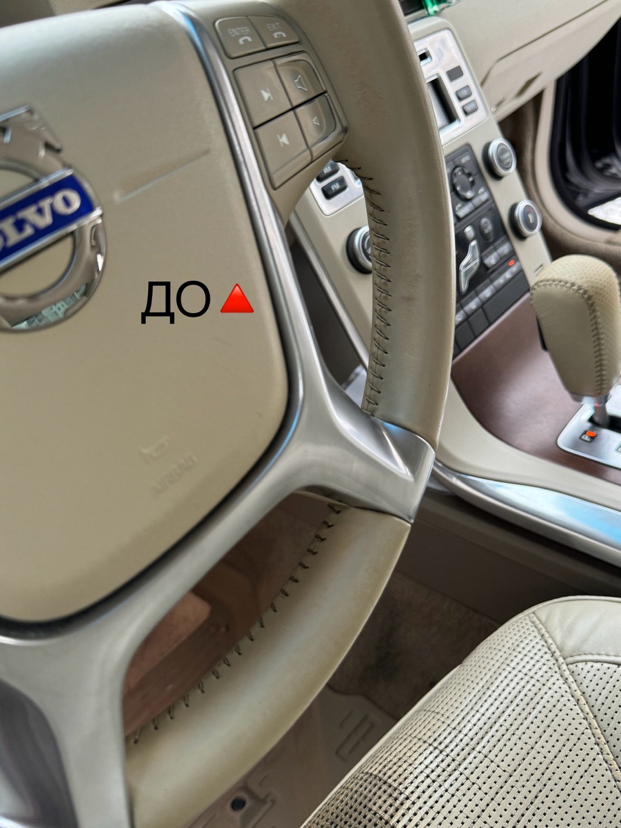 Заводская обивка салона Volvo S80 вся потрескалась и пришла в негодность. Перетянули под оригинал все сидения, руль, ручку КПП и центральный подлокотник.