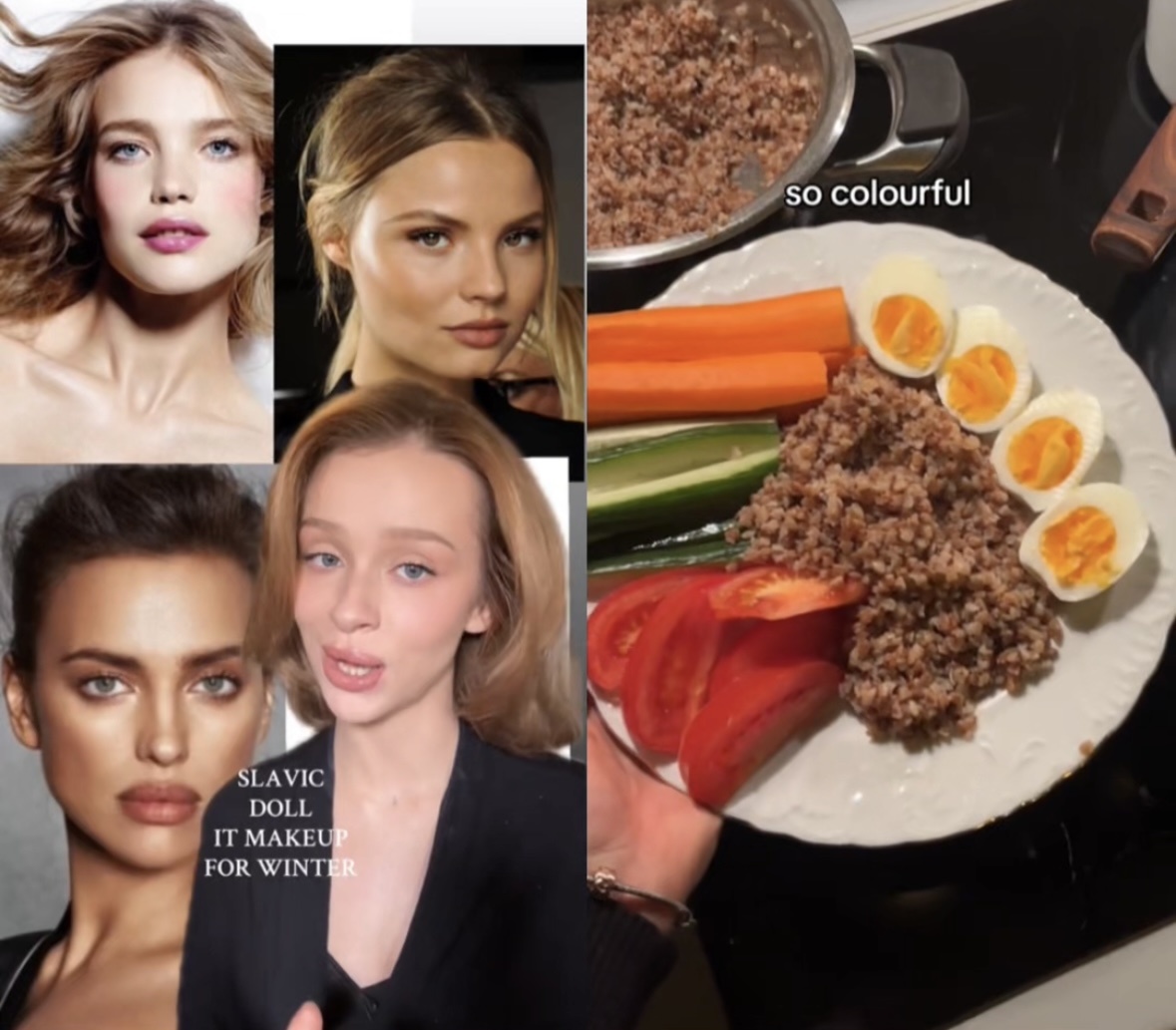 Недавно мы уже обсуждали с вами тот факт, что на место тренда «Slavic Bimbo» пришла такая эстетика, как «Slavic Doll», но как оказалось, лишь макияжами все не обошлось. Сейчас в зарубежном TikTok активно повторяют не только бьюти-образы знаменитых славянских моделей, но также и подробно разбирают аутфиты, и даже обсуждают рацион славянских женщин. Так например, если в тренде «Slavic Bimbo» были представлены совершенно стереотипные элементы того, как живут и как выглядят славянские девушки, то эстетика «Slavic Dolls» опирается на конкретных персонажей, а если говорит точнее, то на таких известных моделей, как Наталья Водянова, Влада Рослякова, Наташа Поли и многих других. Основной фишкой тренда «Slavic Doll makeup» является максимально натуральный макияж, который лишь деликатно подчеркивает увлажненную кожу, кукольные глаза и лёгкий румянец, который будто бы появился совершенно естественным образом. Но к слову, помимо самого макияжа, в TikTok сейчас активно обсуждают и то, чем имен