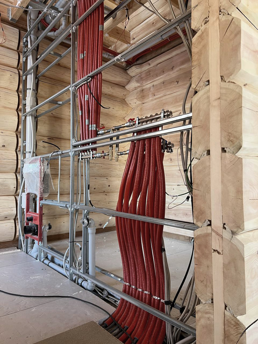 Важным этапом в таких проектах является подготовка — разработка проекта. Благодаря BIM-проектированию мы можем на этапе моделирования заложить все инженерные коммуникации и продумать их реализацию с учётом технологии. Это позволяет нам создавать безусадочные деревянные дома, которые будут служить вам долгие годы.
