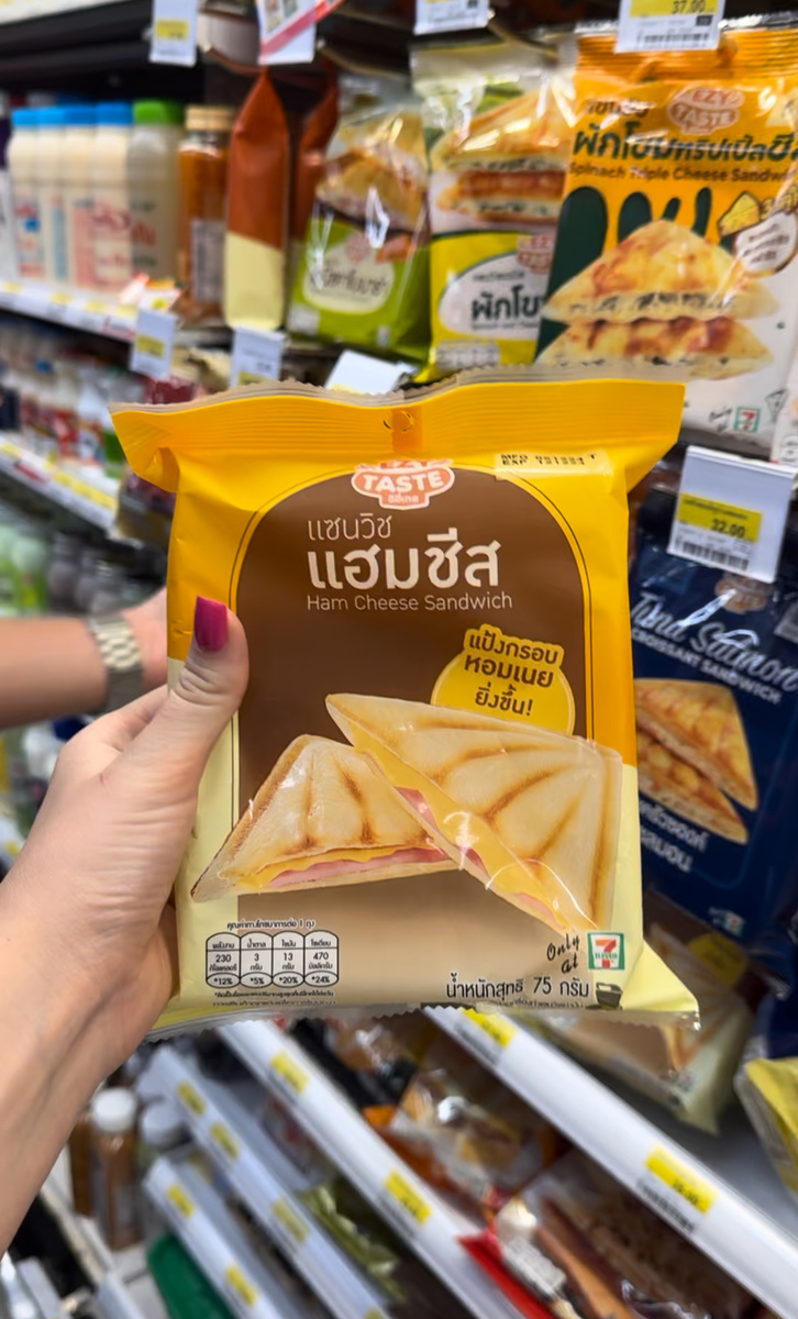 7/11 (севан елевен) -самый популярный в Таиланде магазин. В него, несомненно, зайдет любой турист страны и не один раз ✨ Я собрала небольшой список , что следует попробовать там⤵️ Знаменитые сэндвичи, они действительно очень вкусные, стоят 30–40 бат, наши любимые — с ветчиной и сыром. Рисовое вино. Искать в пивном отделе , поскольку при приготовление этого вина используют пиво. Я нашла его только с третьей попытки, по вкусу немного напоминает нашу брагу, стоит 40 бат. Десерты, очень похожие на моти, а скорее всего это они и есть) Стоят всего 25 бат, я видела только с двумя вкусами, советую клубнику. Вонтоны с креветками. Попросите подогреть их на кассе, так будет гораздо вкуснее. Стоят тоже 40 бат , к ним идет также соевый соус и вилочка. Макаруны , продаются по две штучки в упаковке , стоят тоже примерно 30 бат. Онигири, у нас они уже есть в каждом магазине, но это был наш любимый быстрый перекус. Цена-30 бат. Кокосовый тортик ( Coconut molten cake), мне понравился очень н