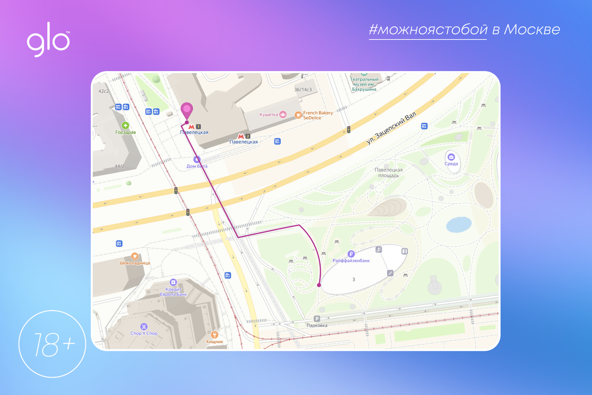 - Несколько кофеен в округе Маршрут такой: выходим из метро “Павелецкая”, переходим Садовое по переходу и поворачиваем налево – мы на месте! После прогулки не забудьте проверить, не закончились ли ваши любимые стики. Если что, рядом много магазинов, где можно их приобрести. 18+ Данный инновационный продукт содержит табак, может нанести вред здоровью и вызывает привыкание. #glorussia