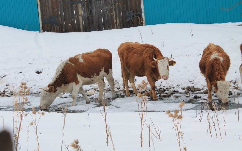 приучают коров есть снег, и выпаивают водой лишь телят и молодняк.