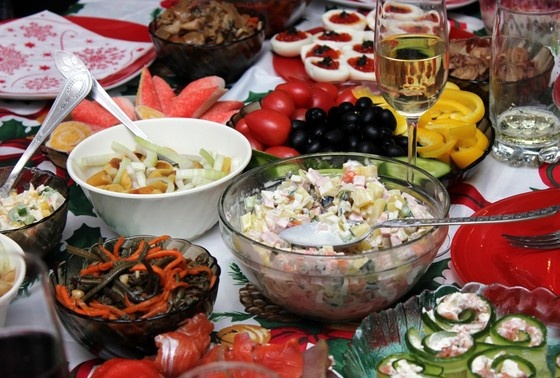 Чтобы не перегрузить организм высококалорийной пищей в новогоднюю ночь, нужно есть «в два подхода», рассказала NEWS.ru гастроэнтеролог и диетолог Нурия Дианова. Она посоветовала принять пищу сперва в районе 21:00, затем сделать перерыв и в следующий раз сесть за стол не раньше полуночи. Нужно сделать двухэтапный стол, то есть в 21:00 можно сесть и поесть немного салатов. Это может быть один салат с майонезом, например оливье, далее надо перейти на овощные, фруктовые салаты с низким содержанием белка и соли. Много блюд делать не надо, — посоветовала диетолог. Далее, около 21:30, она порекомендовала сделать перерыв, встать из-за стола, убрать еду в холодильник и немного походить, например можно довершить приготовления к празднованию. В этом случае съеденное и выпитое успеет перевариться. Дианова порекомендовала сесть за стол во второй раз не ранее полуночи. В качестве основного блюда можно подать что-нибудь легкое, например курицу, рыбу, морепродукты, возможно, утку, главное, не есть кож