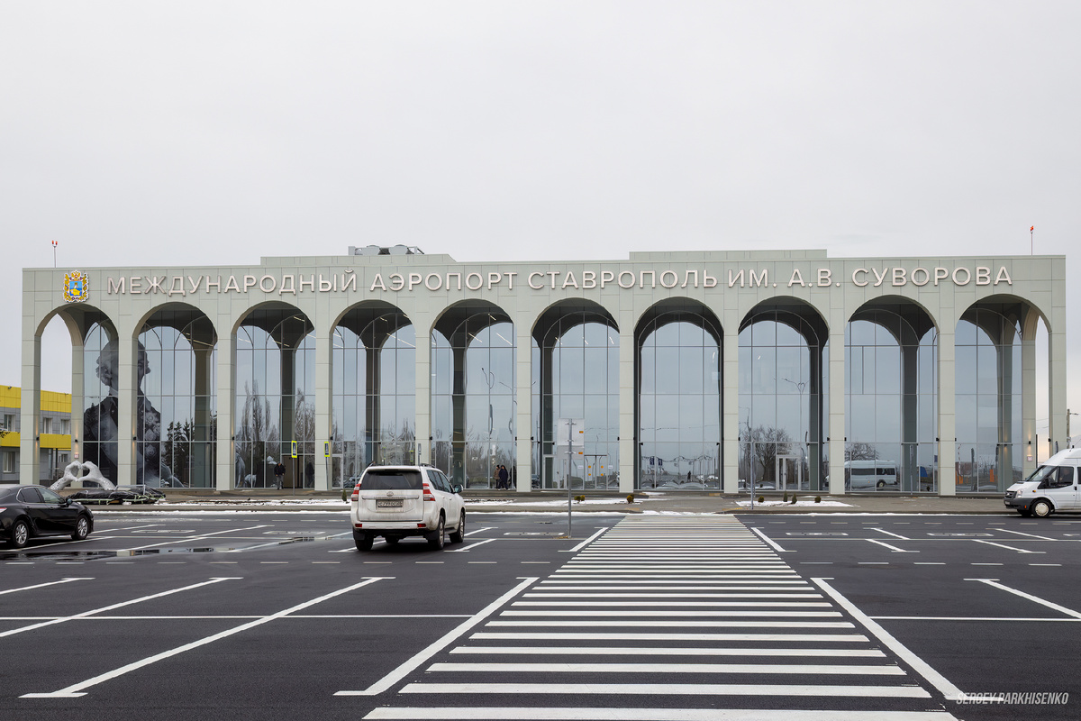 Волна строительства и открытия новых терминалов в аэропортах Северного Кавказа наконец докатилась и до Ставрополя. Строить новый терминал начали ещё в 2021 году, когда аэропорт впервые преодолел отметку в полмиллиона перевезённых пассажиров. И вот, 22 декабря новый терминал внутренних линий ввели в полноценную эксплуатацию. Компанию ему составили аэропорты Чебоксар и Магадана, также получившие новые аэровокзалы. Все три терминала по видеосвязи открывал президент России, а вместе с ним министр транспорта и глава Росавиации. Новое здание площадью почти 6 тысяч квадратных метров рассчитано на ежегодный пассажиропоток до 1 млн человек в год с пропускной способностью до 400 пассажиров в час. На первом этаже пассажиров встречают 13 стоек регистрации (в старом терминале их было 4). Рядом со стойками регистрации расположен зал выдачи багажа с одной багажной лентой. У эскалатора, ведущего на второй этаж, будет работать кафе. Поднимаемся наверх. Здесь разместились ещё несколько кресел и два вхо