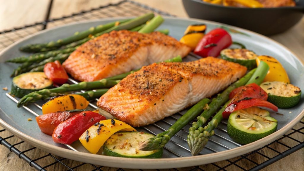 Лосось на гриле с овощным гарниром