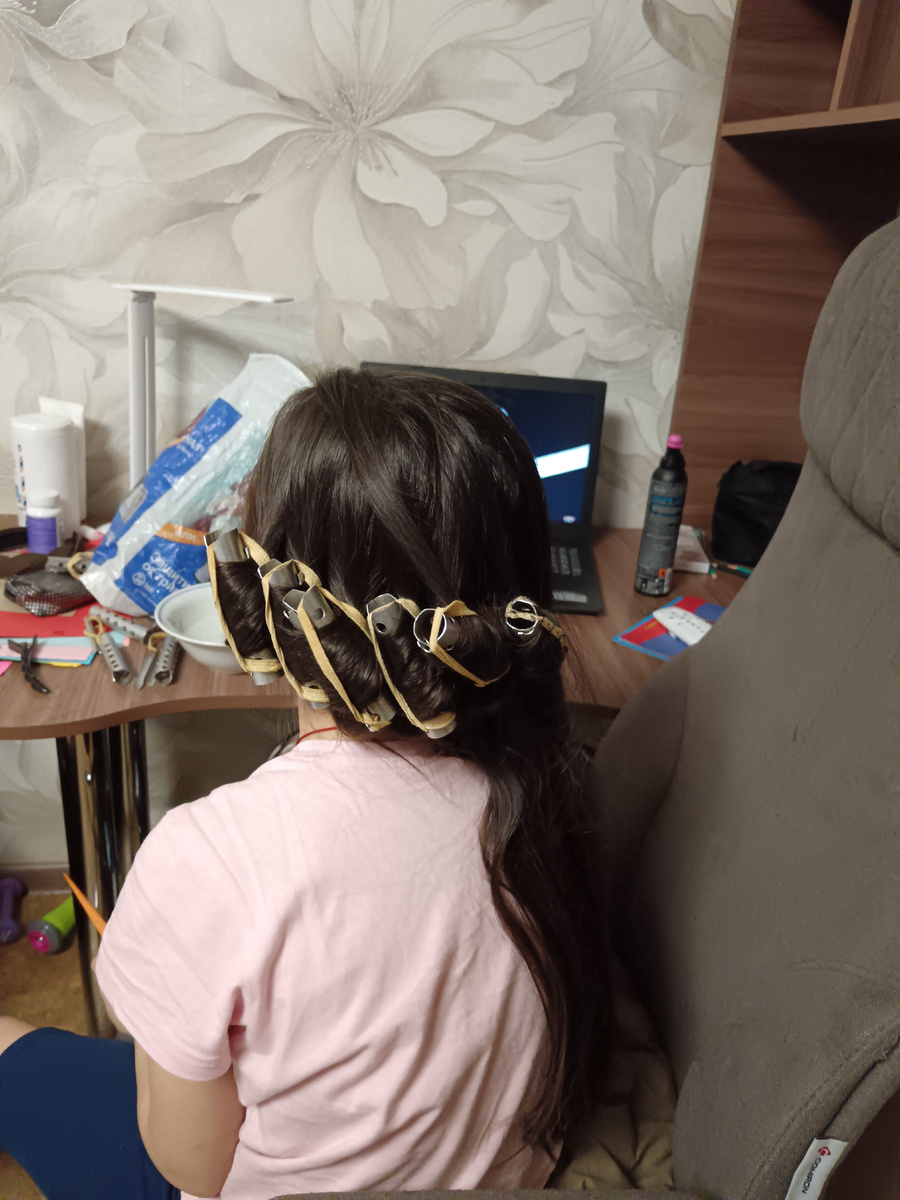 Девочка моя всю ночь спокойно проспала в металлических бигудях 👍 Они ей даже не мешали, говорит. Вот что значит, девочка)) Бабушка утром пришла, забрала как раз по дороге из Вайлдберриз колготки беленькие, а то мы очень быстро выросли под конец года, сняла бигуди, побрызгала лаком, помогла одеть и застегнуть платье. И к 12:00 мы собрали нашу крошку, как принцессу на свадьбу. Игорь Владимирович пофотографировал её на нашем балконе. И хорошо, потому что в школе толком нет хороших фото... И отправилась она в школу. Прямо в платье. Хотя она очень переживала, что охрана её не пустит так в школу. Но пришла моя соцработница и говорит, что сегодня все именно так идут в школу, и всех пускают)) У неё как раз первоклассник и ёлка уже прошла. Девочки на празднике сегодня были все такие красивые 😍 Маленькие взрослые уже) С длинными волосами, в нарядных платьях, в туфельках💃 Мальчишки тоже растут и хорошеют день ото дня. Мне кажется, вот именно только в новый год все такие красивые и наряд
