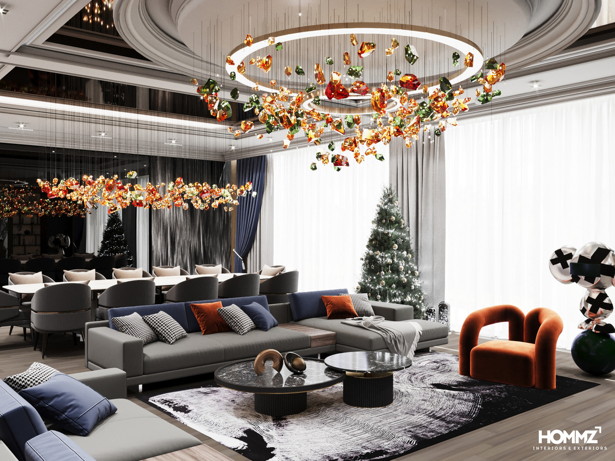 Экостиль задает направление и для праздничного декора всей комнаты. То есть украшения должны иметь природное происхождение, что, кстати, способно сэкономить бюджет и дать разгуляться внутреннему художнику. В декоре могут пригодиться красивые коряги, бечевка, сушеные ягоды и круглые дольки апельсинов, шишки будут здорово сочетаться с серебристыми снежинками или стеклянными звездами. Декор из этих компонентов можно сделать своими руками, и он точно не повторится ни в одном другом доме. Впрочем, изысканный и эксклюзивный декор можно и заказать у профессиональных дизайнеров HOMMZ - не придется тратить свое время, а результат будет как всегда на высоте.