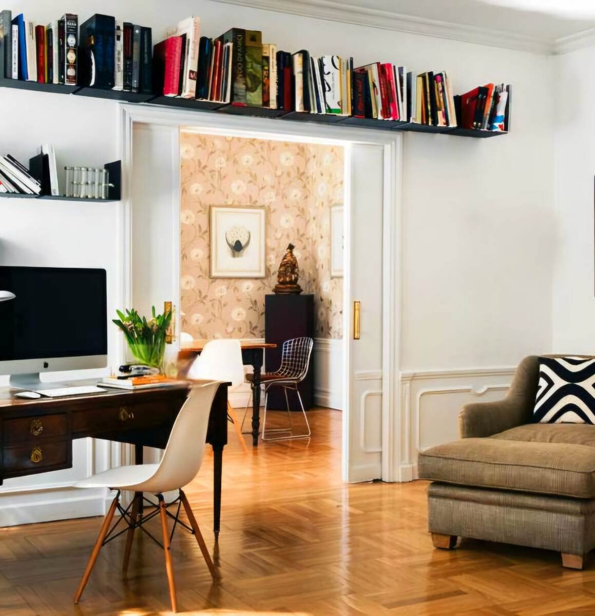Расположить антресоль можно в любом месте, в любой комнате, особенно хорошо подойдут мало задействованные места. Можно использовать углы, место вокруг окна, двери, балконное пространство, ниши и эркерные зоны. В антресоли под потолком можно убрать вещи, которыми вы пользуетесь нечасто, сезонные вещи и многое другое.