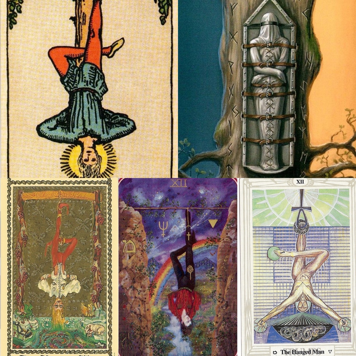 Миф об Одине, подвесившем себя на мировом древе Иггдрасиль ради обретения рун, имеет глубокую связь с символикой «Повешенного». Согласно «Старшей Эдде», Один добровольно провел девять ночей на дереве, пронзенный собственным копьем, без пищи и воды. Этот акт стал для него жертвой ради получения сакрального знания — рун, символизирующих силы мироздания. Один в данном контексте воплощает архетип искателя, готового принести в жертву свое тело, чтобы постичь тайны духа. Его подвешенное состояние аналогично аркану «Повешенный», где герой отказывается от привычного восприятия мира ради более глубокого понимания. Древо Иггдрасиль в скандинавской мифологии — это ось мира, соединяющая все уровни бытия. Подвешивание к древу символизирует переход между уровнями реальности и позволяет герою обрести знание, которое невозможно получить обычным путем. В аркане «Повешенный» это отражается в состоянии покоя и погружения вглубь себя, при котором прежнее умирает, а новое рождается.