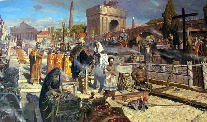 Даже в оценке гонений существует разница. В то время как безвинных христиан в Римской империи истребляли десятками тысяч, применяя жестокие пытки и варварские методы травлей зверьми на арене, со стороны язычников нашлась лишь одна мученица Гипатия. Тем не менее, именно Христианский Мир обвиняют в жестокости, восхищаясь одновременно "праведным" геноцидом верующих просвещёнными римлянами. В V веке никто из христиан не додумался использовать Колизей как место казни язычников, их публично не сжигали, хотя "просвещённые" римляне считали массовые убийства христиан и других своих врагов нормой жизни. Представьте себе реакцию современных ненавистников христианства, если бы христиане устроили язычникам то же самое, что язычники Рима устраивали христианам в течение трёх веков? В качестве обратных примеров реальной истории мы видим лишь введение штрафов за языческие обряды и постепенное угасание язычества в течение полу тысячелетия.
