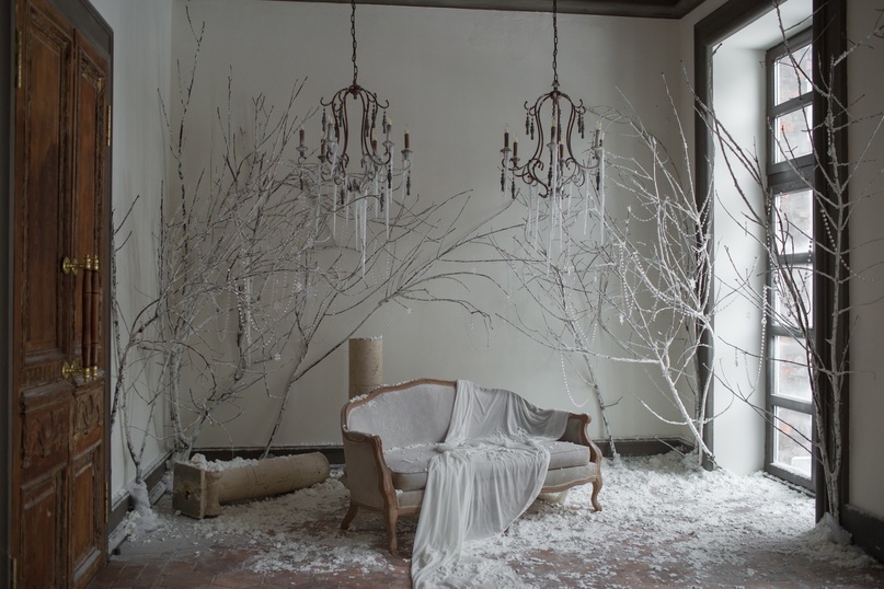 Зима — это время, когда мир вокруг нас переходит в состояние чарующего спокойствия, словно окутанный белоснежной пеленой. Фотостудия Leonastage в зале Italy предлагает уникальную возможность погрузиться в настоящую зимнюю сказку, где прошлое и текущее время переплетаются, создавая атмосферу магии. Попадая внутрь зала, каждая деталь вызывает восхищение. Огромная кровать, укрытая белоснежным покрывалом, драпированная ткань, спускающаяся с потолка, создает ощущение таинственного театра, где каждая складка скрывает в себе воспоминания о давно ушедших днях. Окна, обрамленные инеем с прозрачными узорами на стеклах, словно рассказывают о сказках, которые облетали это место много лет назад. Зеркало в пол отражает всю роскошь обстановки и придает пространству глубину, позволяя наблюдать за магией момента. Кресло, укрытое легким слоем снега, и кушетка наполняют ощущением уюта, приглашая в этот мир заброшенной усадьбы. Загадочные заснеженные ветки с сосульками, будто охраняющие свои тайны, придаю