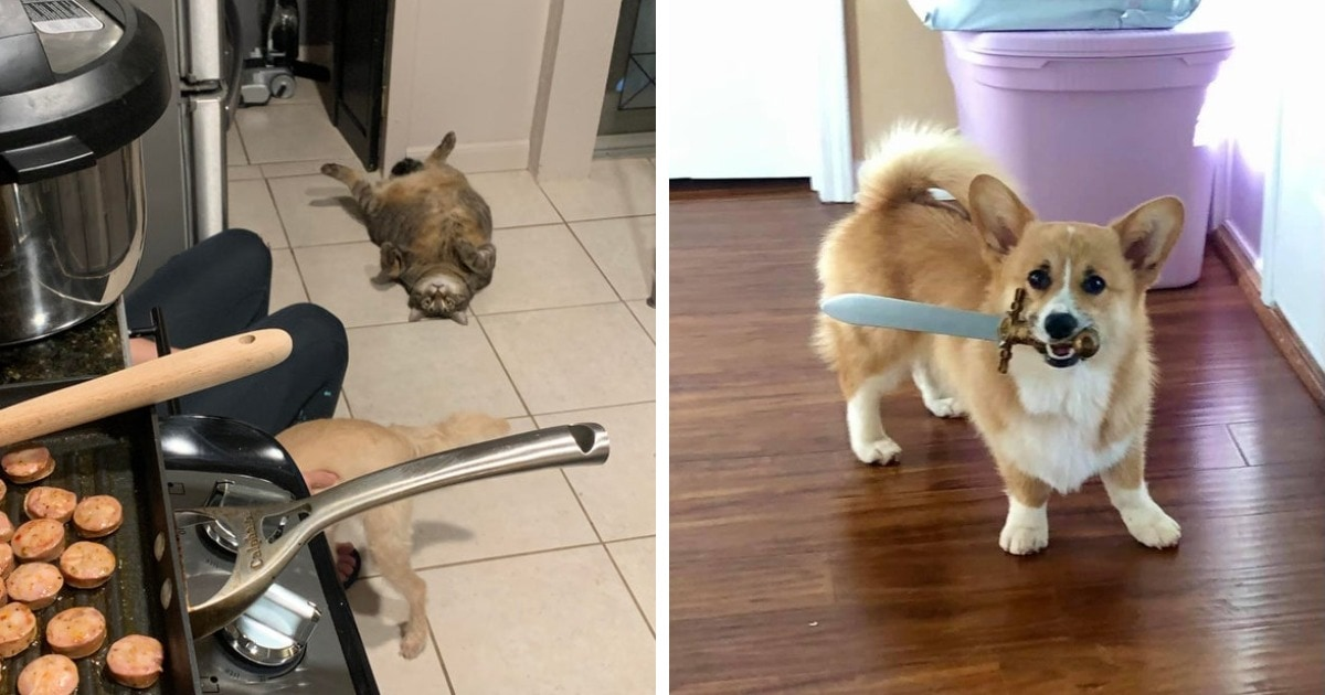 Для того, чтобы человек понял, чего от него хочет его мохнатый друг, домашним животным приходится как можно яснее поведывать о своей хотелке. Поэтому эти очаровательные существа достигли высокого мастерства в демонстрации своего главного и неиссякаемого желания вкусненько покушать. И хоть хозяева уже давно изучили отнюдь не тонкие намёки своих любимых котиков и собачек, им по-прежнему весело наблюдать за этими весьма убедительными жалостливыми глазками хвостатых хулиганов. Именно такие случаи мы и собрали в нашей сегодняшней подборке. В ответ я просто отправил это фото. Она не упускает ни одной возможности полакомиться! Выглядело бы убедительно, если бы не его толстое пузико. И так всякий раз, когда я готовлю… У меня закончился корм, поэтому у собаки сегодня праздник. Готовлю ей завтрак. Надеется на то, что вдруг ему что-то достанется. Надпись на кухонном полотенце: «Я буду наблюдать за каждым блюдом, что ты готовишь, за каждым кусочком, что ты ешь». А вот и ещё 15 питомцев, которые ум