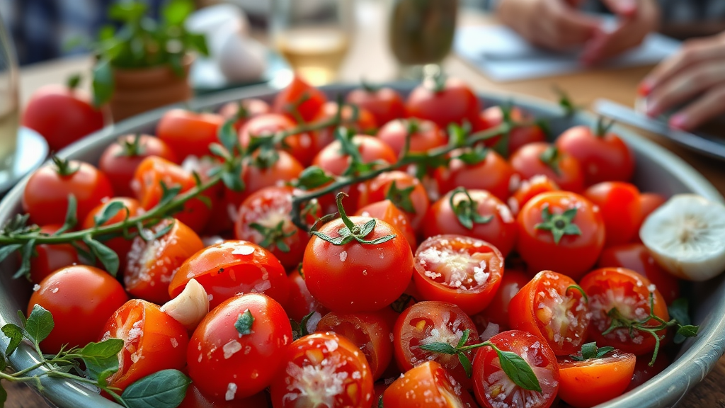 Просто Идеальные! Малосольные помидоры по-армянски: 3 дня и все готово Представьте себе теплый вечер в кругу любимых людей, когда за окном слышен шорох листвы, а на столе — красота, созданная с любовью. Малосольные помидоры по-армянски — это то, что сделает вашу встречу с близкими поистине особенной. Они красивы, яркие и невероятно ароматные. Это лакомство станет не только вкусным дополнением к столу, но и настоящим символом дружбы и уютного общения. Ингредиенты 1 кг спелых помидоров (предпочтительно местных сортов) 100 г крупной соли 1 пучок свежей зелени (укроп и петрушка) 5-6 зубчиков чеснока Чёрный перец горошком — по вкусу 1 лавровый лист Инструкция по приготовлению Подготовьте ингредиенты: хорошо промойте помидоры под холодной водой, обсушите. Порежьте помидоры: сделайте ножом 2-3 надреза на каждом помидоре, чтобы они быстрее пропитались солью. Смешайте соль с перцем: в отдельной миске соедините крупную соль и черный перец. Подготовьте зелень: нарежьте укроп и петрушку, а чеснок