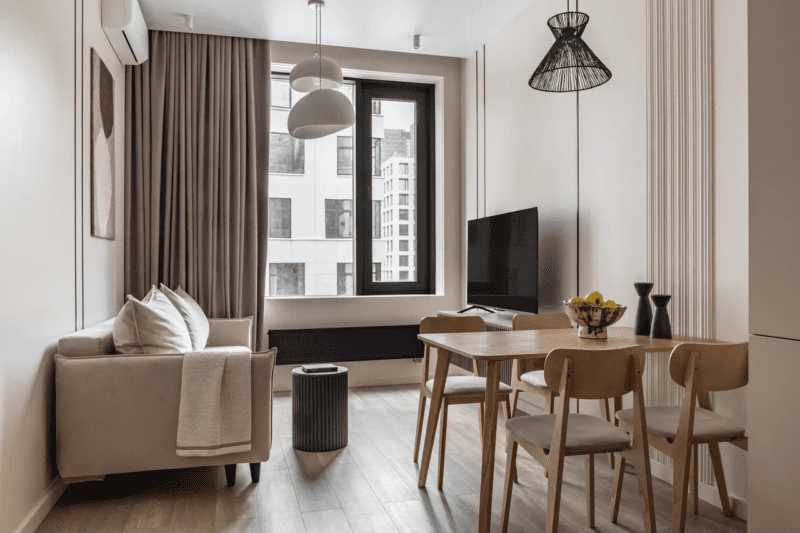 Квартира 41 м² в молодом и современном районе в ЖК ЗИЛАРТ. Проект выполнен в стиле джапанди с целью сдачи в аренду предположительно молодой паре без детей или студенту .