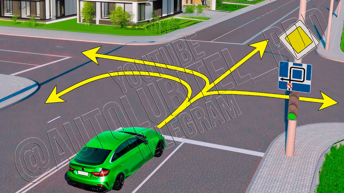 То есть, чтобы не нарушить правила, водителю разрешено проехать прямо и выполнить разворот на перекрестке.