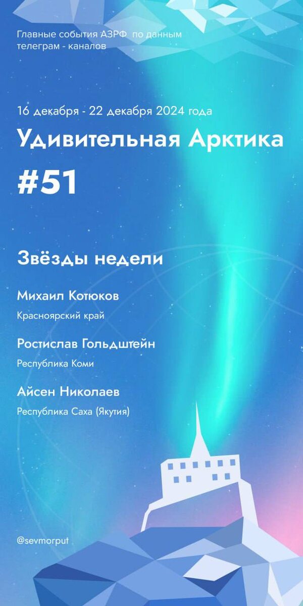 Представляем еженедельный рейтинг «Звёзды недели — Удивительная Арктика. Неделя 51». Михаил Котюков «Челюсть из ноги» Российские хирурги восстановили нижнюю челюсть пациентки, используя малоберцовую кость из её ноги. Уникальная операция длилась более 8 часов и позволила пациентке избавиться от эстетических и функциональных проблем. Технология трансплантации, включающая 3D-моделирование и пересадку сосудистой ножки, стала примером прорыва отечественной медицины. Ростислав Гольдштейн «Один округ на всех» В связи с демографическими изменениями в Воркуте остался лишь один избирательный округ. Сокращение численности населения на севере Республики Коми вынудило перераспределить границы округов, включая объединение Инты и Воркуты. Новый подход к выборам станет тестом для региона, где меняется не только карта, но и структура управления. Айсен Николаев «Школа будущего» В Жатае открыли первую школу в Якутии, работающую на солнечных коллекторах. Новый корпус, рассчитанный на 360 учеников, осн