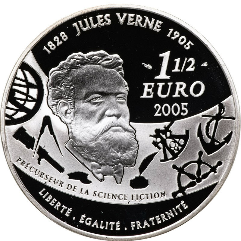 Это обрадовало, и только. А удивило совсем другое :она была выпущена в 2005 году, и посвящена 100 летию со дня смерти Жюля Верна. Из чистого серебра, 900 пробы.