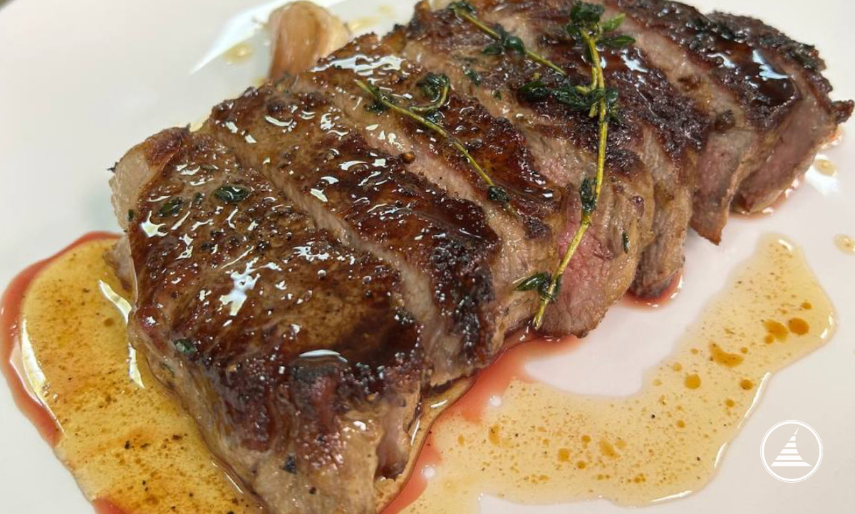 4. Поливаем стейк смесью из сковороды перед снятием с огня.