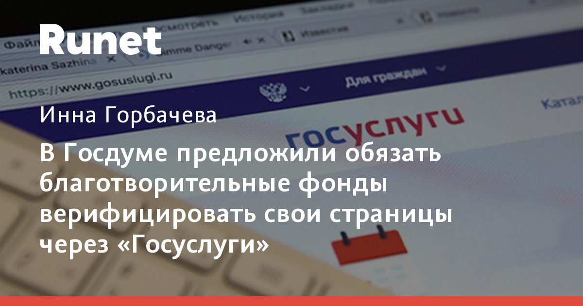 В Госдуме предложили обязать благотворительные фонды верифицировать свои страницы через «Госуслуги»