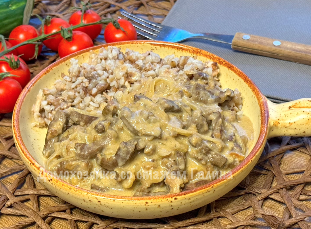 Здравствуйте, дорогие читатели! Возможно, вы уже насытились праздничными салатами и закусками. Давайте вернемся к простой пище и приготовим что-то горячее. Предлагаю вам рецепт печени по-строгановски - блюдо русской кухни, которое традиционно готовят из говяжьей печени, хотя свиная или баранья тоже могут стать вкусной альтернативой. Это блюдо появилось в XIX веке как вариация старинного русского блюда «печень в сметане». По технологии приготовления оно схоже с бефстрогановым: основной ингредиент нарезается мелкими брусочками, и обязательным компонентом является репчатый лук. Основу соуса составляет сметана, придающая блюду нежный вкус и бархатистую текстуру. Итак, печень промыла, срезала пленку и жилки, затем нарезала брусочками. Репчатый лук нарезала полукольцами. Разогрела сковороду со сливочным и растительным маслом 1:1, выложила лук и обжарила до румяности на среднем огне. В пищевой пакет выложила печень, добавила муку, посолила и поперчила. Зажала край пакета и встряхнула, таким
