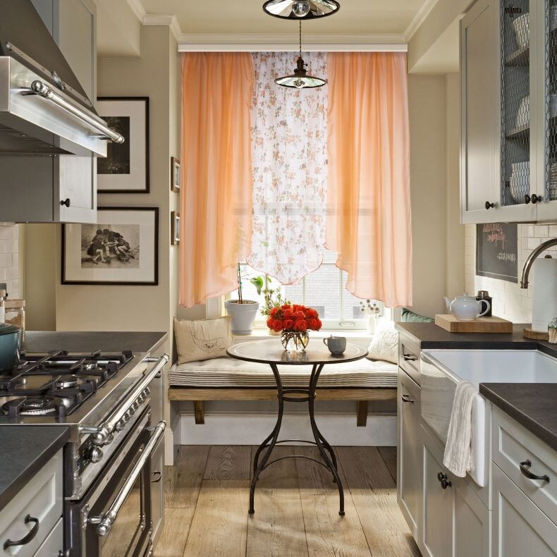 Тканевые занавески с принтами: Если ваша кухня оформлена в стиле прованс или деревенском стиле, выбирайте шторы с цветочными или клетчатыми узорами. Такие ткани создают атмосферу уюта и добавляют яркие акценты в интерьер.