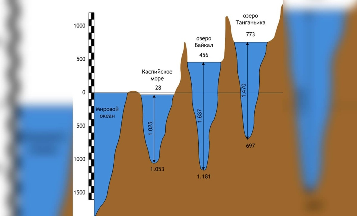 Байкал прежде всего известен тем, что является самым глубоким озером на планете. Его максимальная глубина составляет 1642 метра, что почти в пять раз превышает высоту Эйфелевой башни! Средняя глубина озера также впечатляет — около 750 метров, что делает его поистине уникальным по своим размерам и объему. Сравнение Байкала с другими водоемами земли. Источник изображения: ecohydrobio.ru Однако особенным озеро Байкал делает не только рекордная глубина. Это озеро является крупнейшим пресноводным резервуаром на Земле. В это трудно поверить, но его воды содержат 19% всей пресной воды на Земле, а объем достигает 23,6 тысяч кубических километров. Для сравнения, это почти в 90 раз больше, чем объем Азовского моря. На Байкале больше воды, чем в Азовском море. Источник изображения: set-travel.com Помимо всего этого, озеро Байкал поражает своим возрастом. В то время как обычные озера живут в среднем 10–20 тысяч лет, Байкал образовался примерно 25–35 миллионов лет назад. Удивительно, но он словно н
