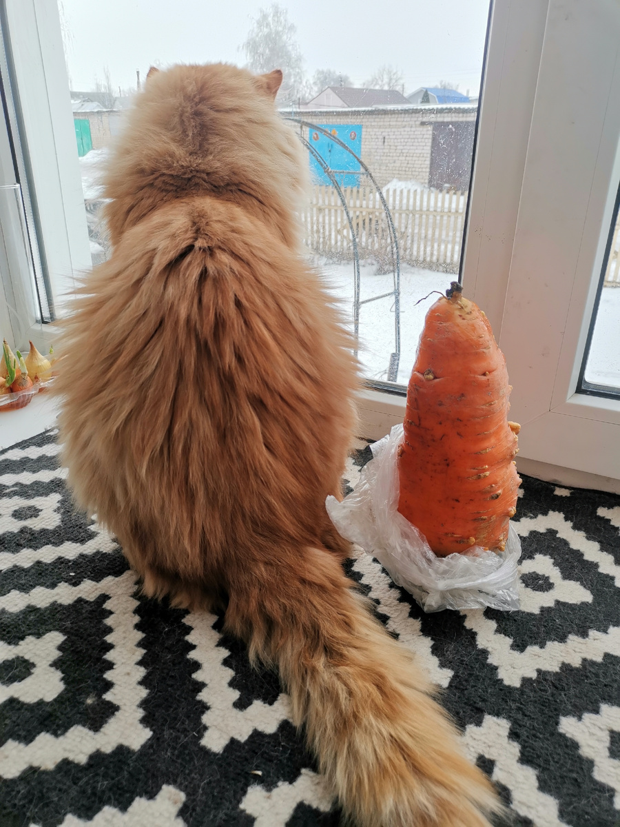 Помните, как в мультике измеряли в попугаях и в удавах? А я вот кота морковкой меряю. Совсем забыла рассказать про свой морковный урожай 2024 года.