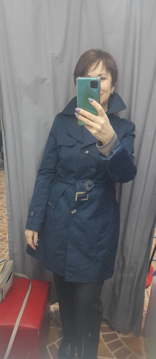 Из верхней одежды понравились только два тренча . Первый тёмно-синий, укороченный, в новом состоянии.