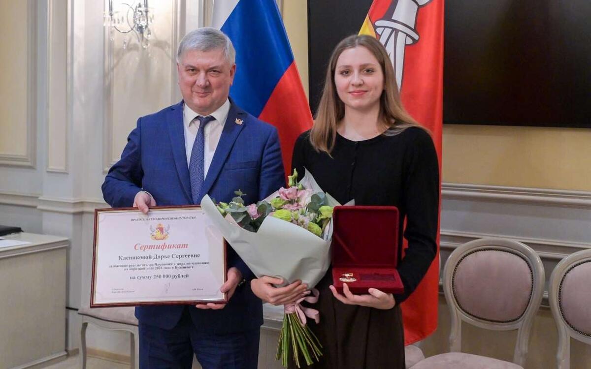 Глава региона в своем Telegram-канале написал, что это «золото» на мировом первенстве — первое в плавании для Воронежской области. Дарья Клепикова получила награду за выдающиеся выступления на чемпионате мира, спортивное мастерство и волю к победе. На встрече губернатор отметил и тренера спортсменки Олега Цветковского. Его вклад в воспитание новых поколений воронежских пловцов невозможно переоценить.